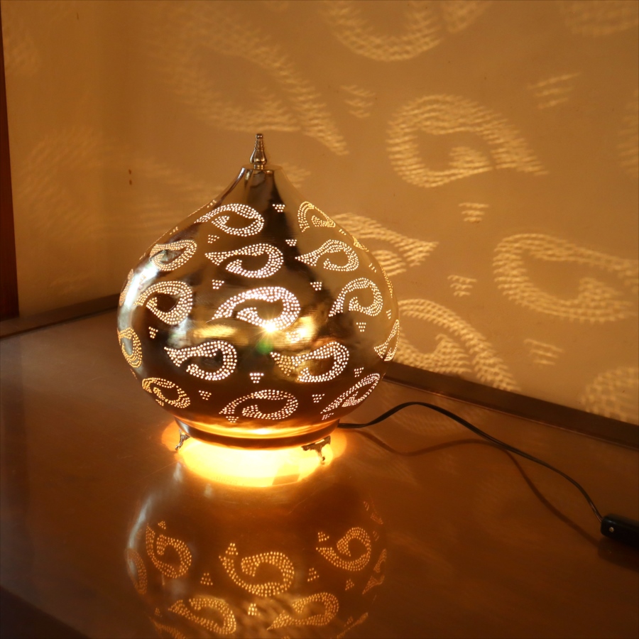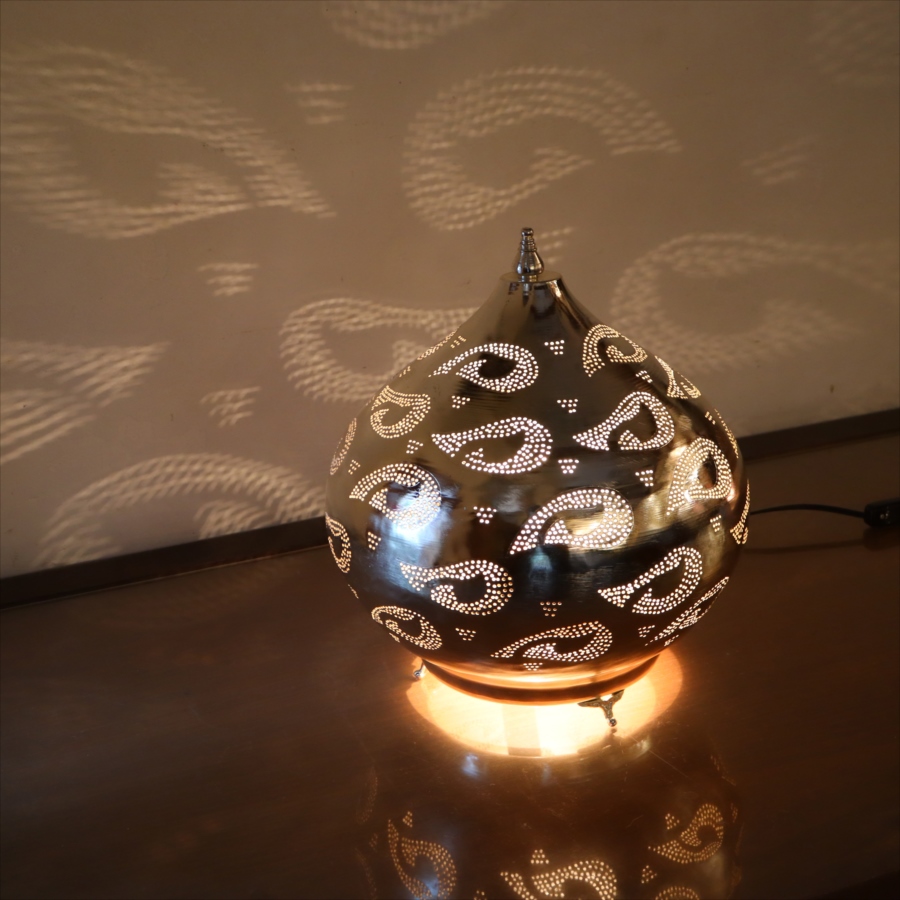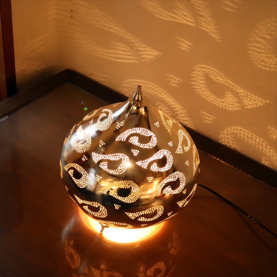 Key:モロッコランプ BOHO モロッコランタン メタルシェード ボヘミアンスタイル シルバー メタルランプ インダストリアル テーブルランプ テーブルライト 間接照明 室内照明 店舗照明 Morroco Lamp Egyptian lamp Egypt craftmanship