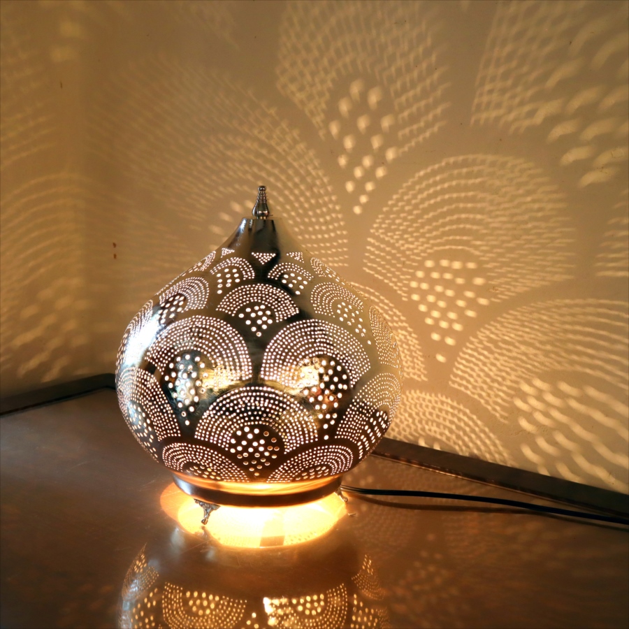 Key:モロッコランプ BOHO モロッコランタン メタルシェード ボヘミアンスタイル シルバー メタルランプ インダストリアル テーブルランプ テーブルライト 間接照明 室内照明 店舗照明 Morroco Lamp Egyptian lamp Egypt craftmanship
