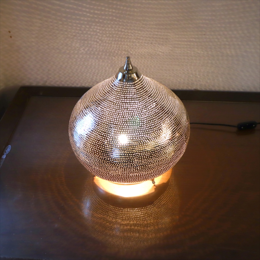 Key:モロッコランプ BOHO モロッコランタン メタルシェード ボヘミアンスタイル シルバー メタルランプ インダストリアル テーブルランプ テーブルライト 間接照明 室内照明 店舗照明 Morroco Lamp Egyptian lamp Egypt craftmanship