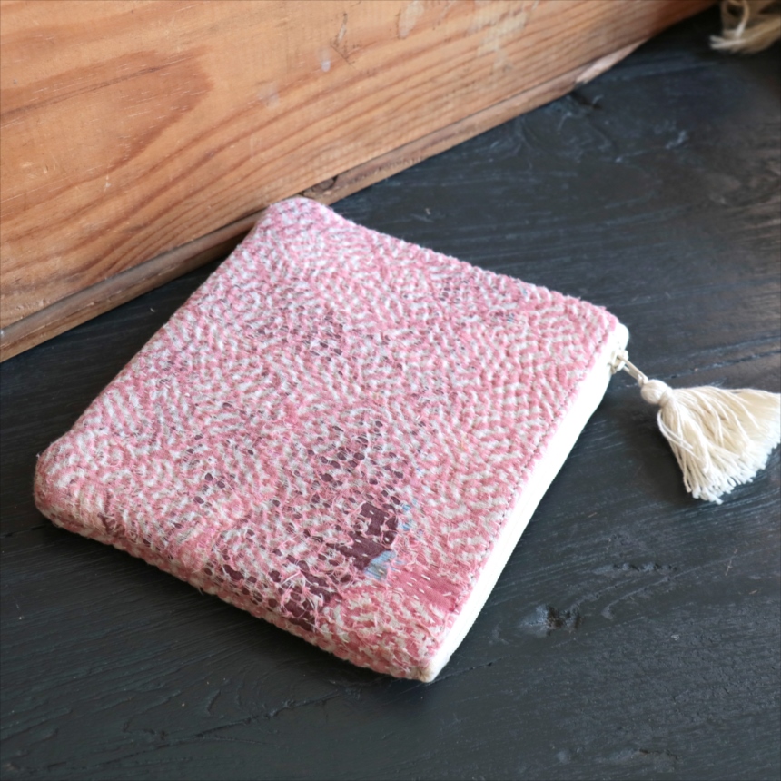 4. カンタ刺繍 ミニポーチ フラットポーチ16.5×19cm ヴィンテージカンタ 現品