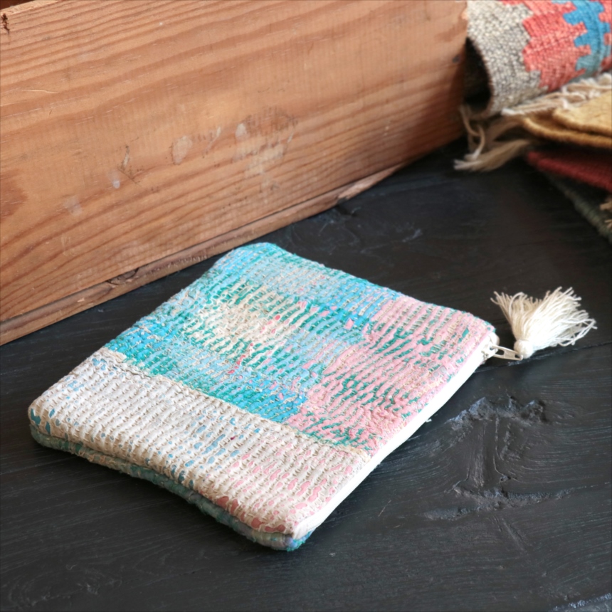 4. カンタ刺繍 ミニポーチ フラットポーチ16.5×19cm ヴィンテージカンタ 現品