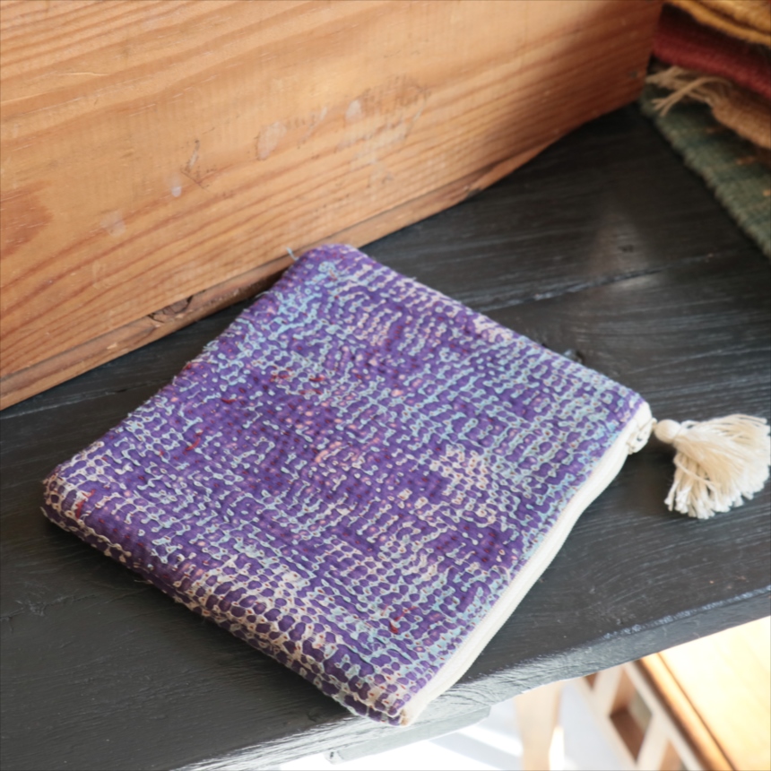4. カンタ刺繍 ミニポーチ フラットポーチ16.5×19cm ヴィンテージカンタ 現品