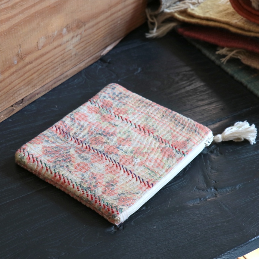 4. カンタ刺繍 ミニポーチ フラットポーチ16.5×19cm ヴィンテージカンタ 現品