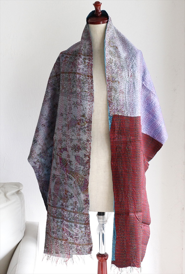 Key:古布、アンティーク布、カンタ、カンタ刺繍、ベンガル、インド、シルク、手仕事、アルチザン、コレクタブル、Kantha Embroidery, Hand craft, antique fabric, India, Bangradish, シルクスカーフ、スカーフ