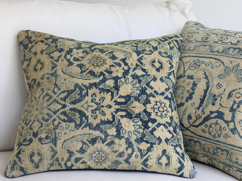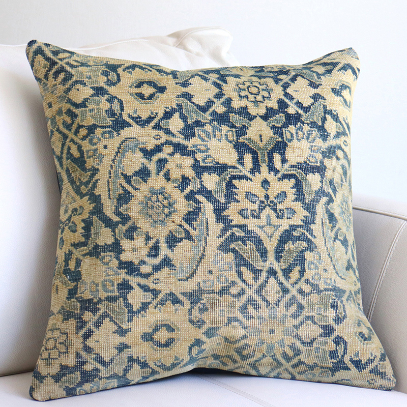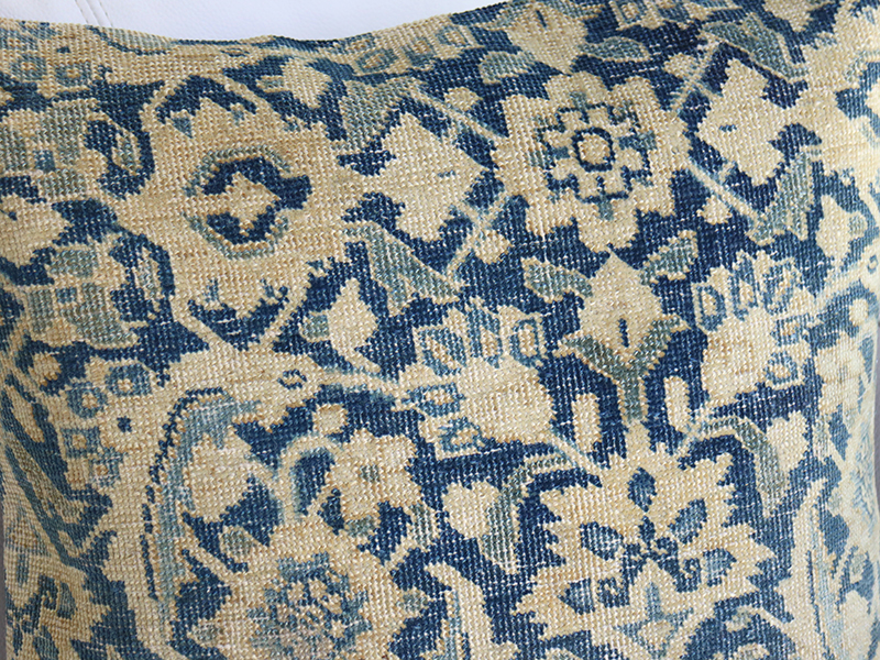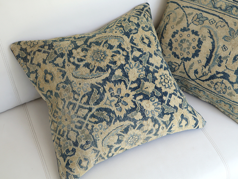 【15%OFF】ヴィンテージ・絨毯クッション 45cm角 ブルー ブリーチしたアンティーク加工