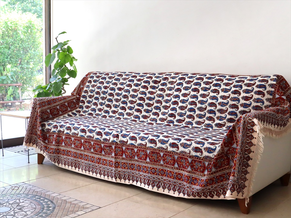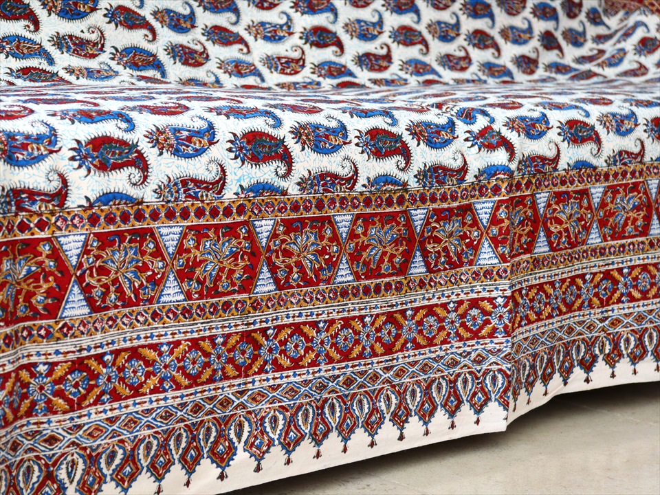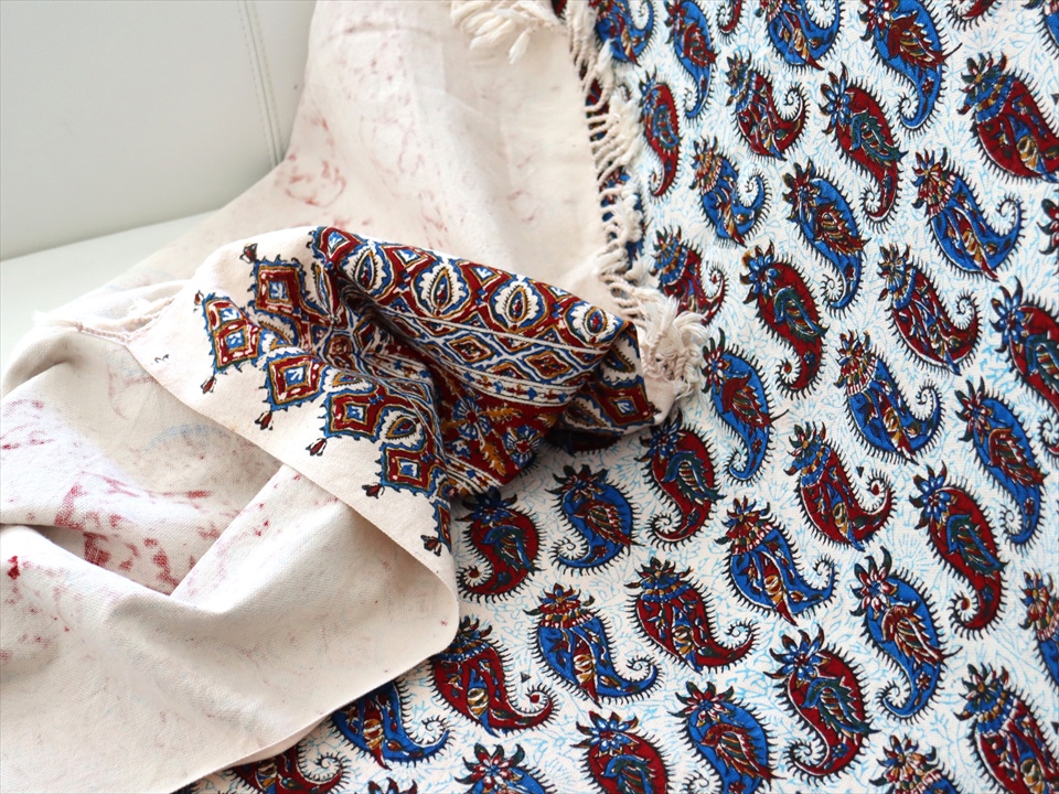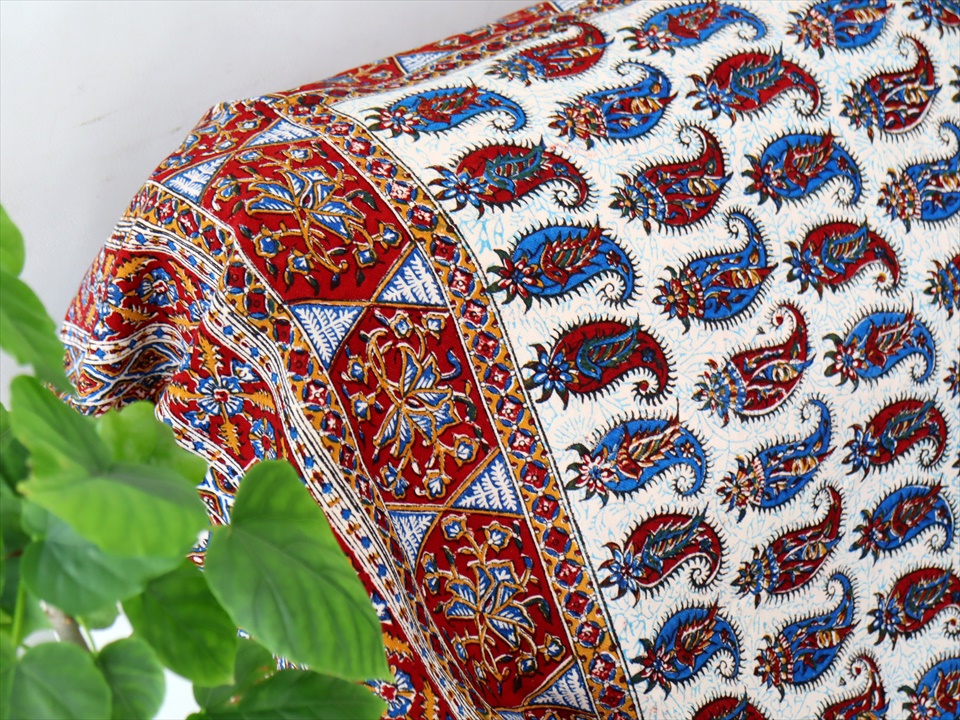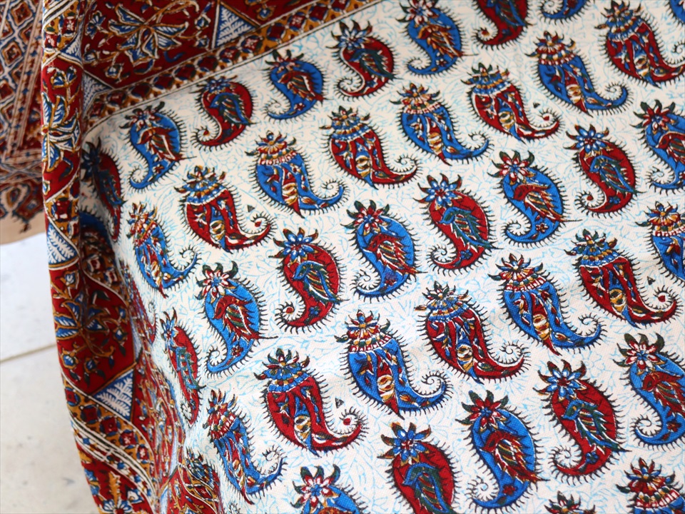 Key:ガラムカール・更紗・イラン・イスファハン・ペルシャ・シルクロード・コットン・綿100%・染色・ブロックプリント・木版・伝統工芸・テーブルクロス・ソファカバー・マルチカバー・タペストリー・背景・ペイズリー