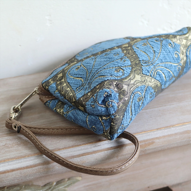 トルコデザイン コスメポーチ ストラップ付クレスト ブルー
