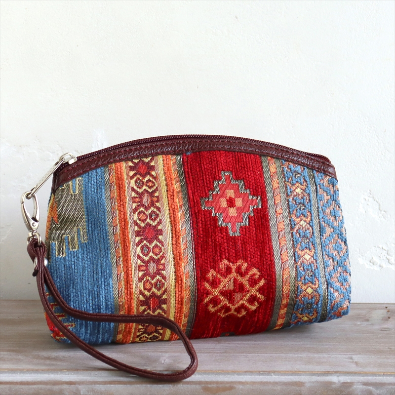 トルコの伝統柄を織り込んだ、エスニックなデザイン&カラーのポーチです。