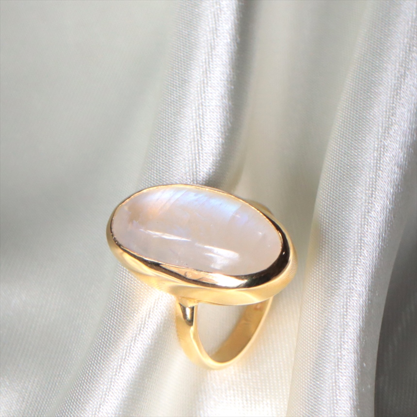 - レインボームーンストーン シルバーリング 大粒 縦長オーバル 18KGF 天然石 トルコジュエリー カラーストーン