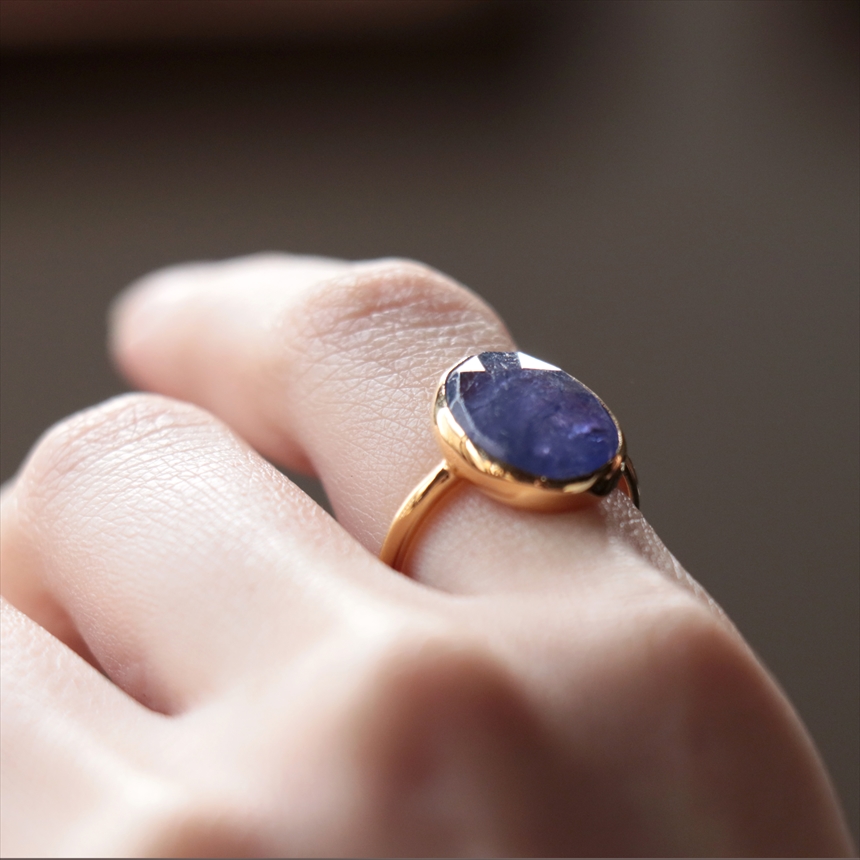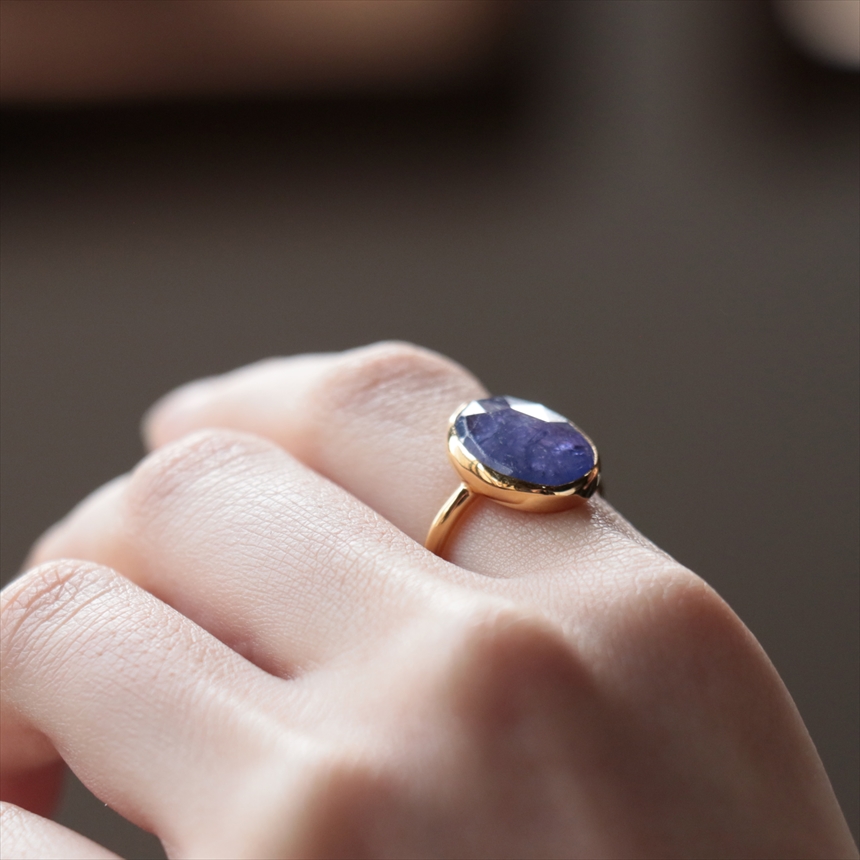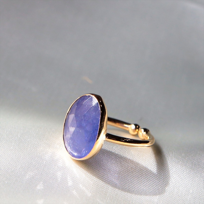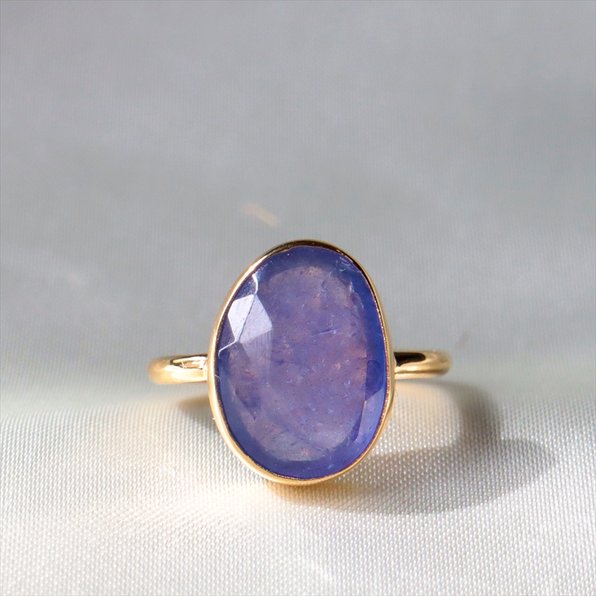 - タンザナイト シルバーリング オーバル 縦長 18KGF 天然石 トルコジュエリー カラーストーン