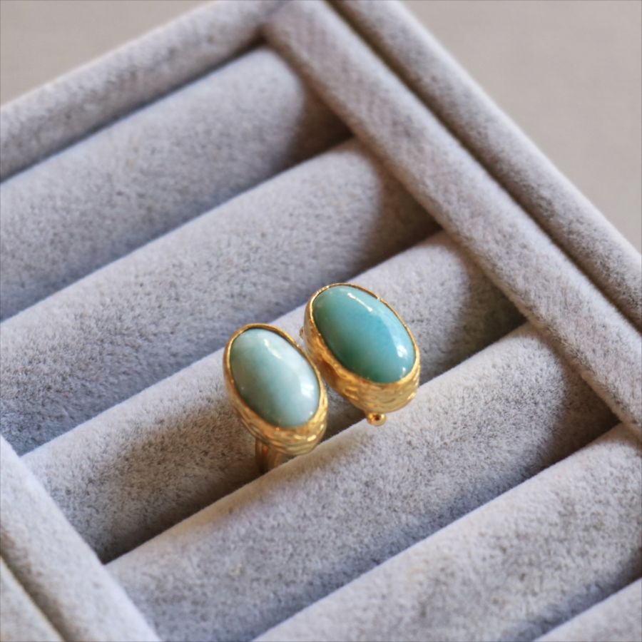 ラリマーダブルリング オーバル アルサメイア トルコジュエリー カラーストーン