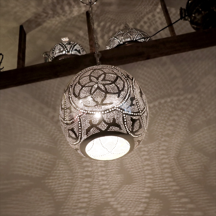 - 【10%OFF】メタルシェード モロッコランプ Moroccan Metal shade Lamps ペンダントランプ ラウンド形 φ27cm エジプト製