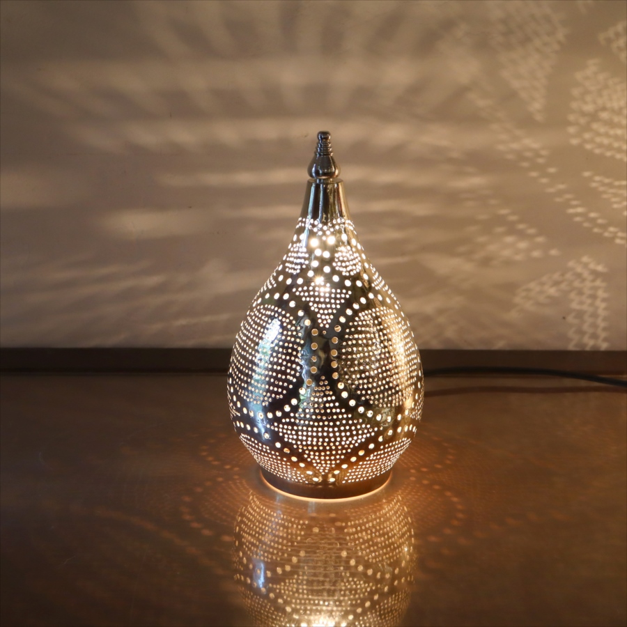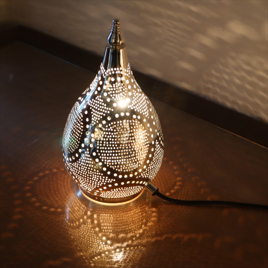 Key:モロッコランプ BOHO モロッコランタン メタルシェード ボヘミアンスタイル シルバー メタルランプ インダストリアル テーブルランプ テーブルライト 間接照明 室内照明 店舗照明 Morroco Lamp Egyptian lamp Egypt craftmanship