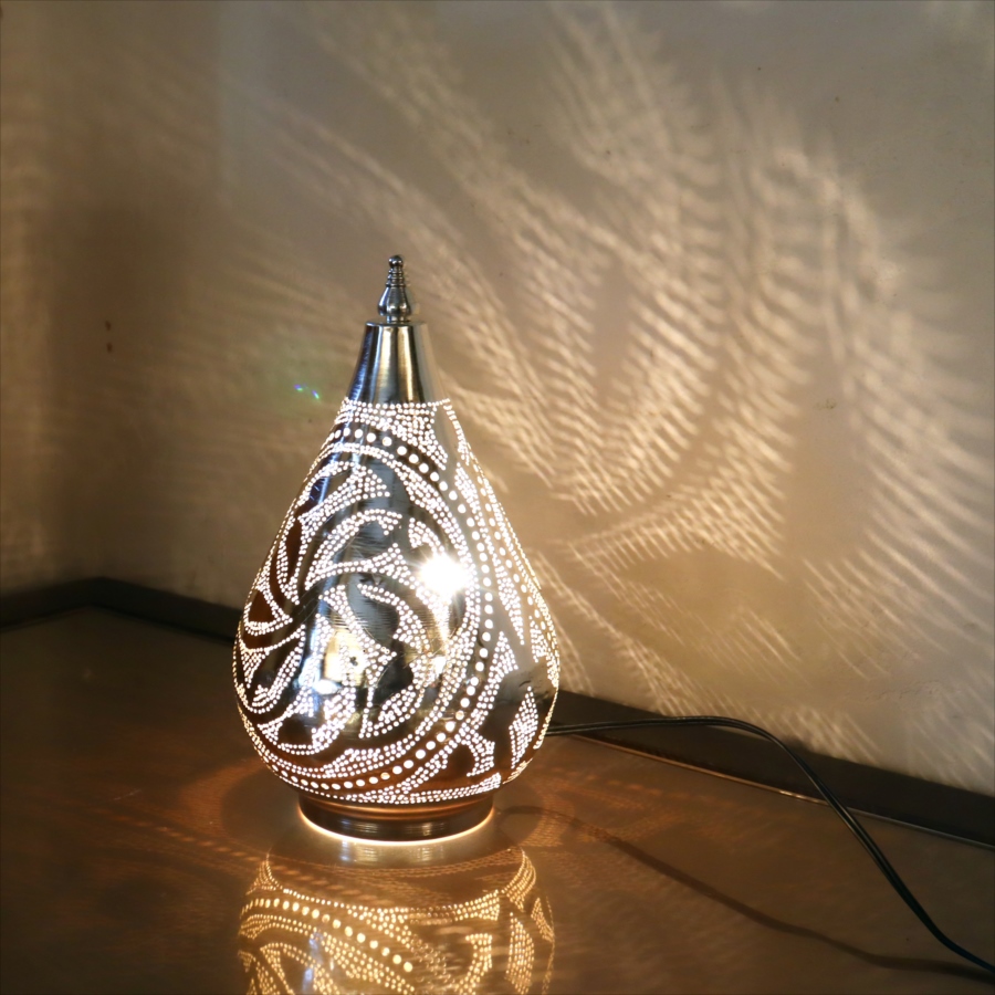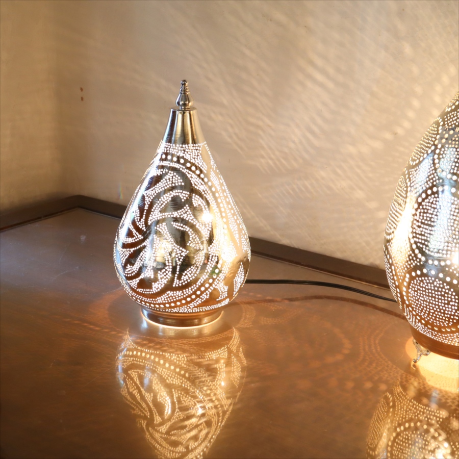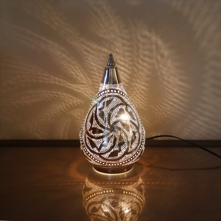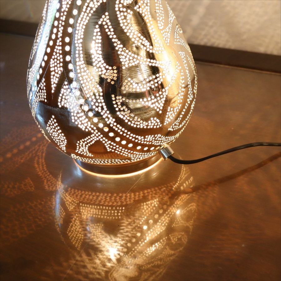 Key:モロッコランプ BOHO モロッコランタン メタルシェード ボヘミアンスタイル シルバー メタルランプ インダストリアル テーブルランプ テーブルライト 間接照明 室内照明 店舗照明 Morroco Lamp Egyptian lamp Egypt craftmanship