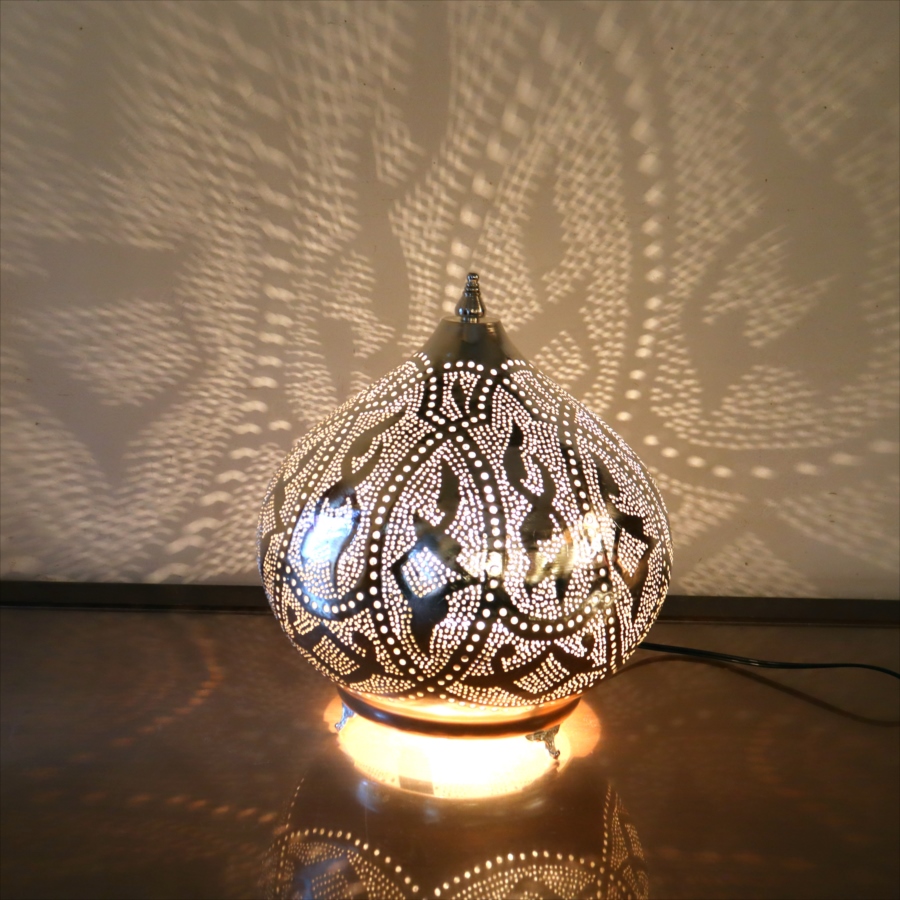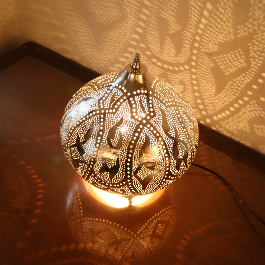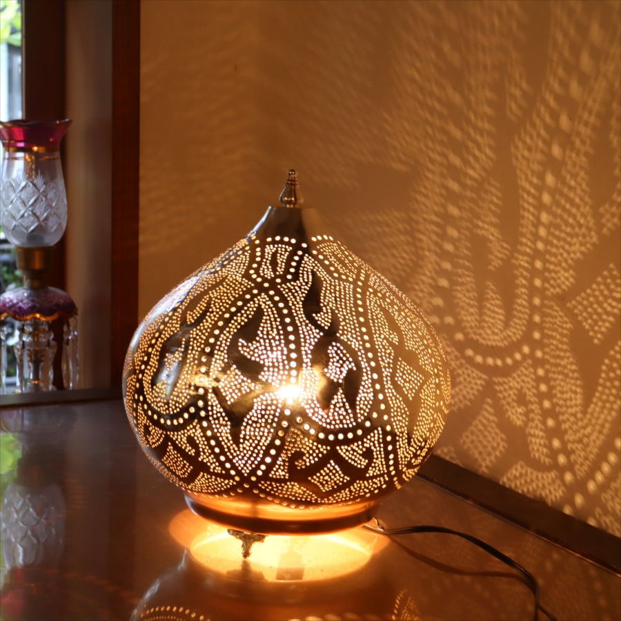 Key:モロッコランプ BOHO モロッコランタン メタルシェード ボヘミアンスタイル シルバー メタルランプ インダストリアル テーブルランプ テーブルライト 間接照明 室内照明 店舗照明 Morroco Lamp Egyptian lamp Egypt craftmanship