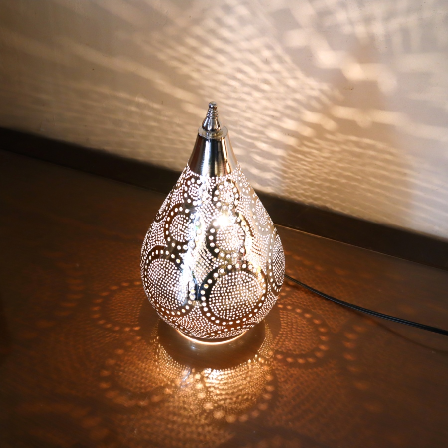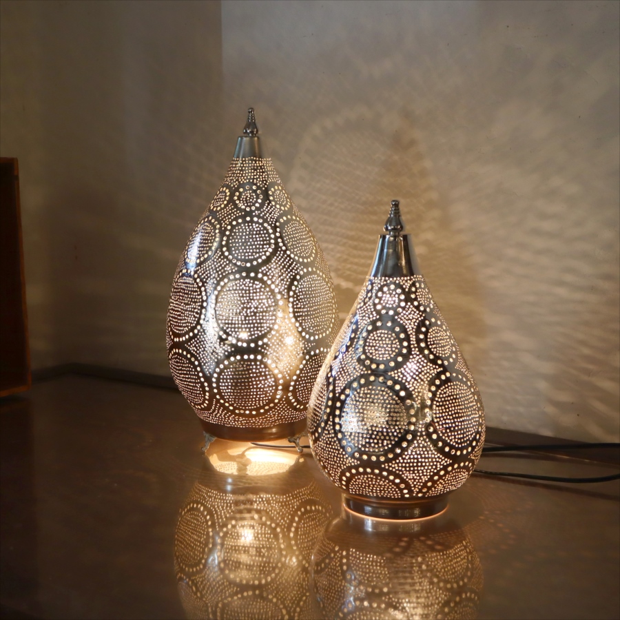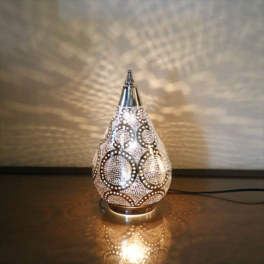 Key:モロッコランプ BOHO モロッコランタン メタルシェード ボヘミアンスタイル シルバー メタルランプ インダストリアル テーブルランプ テーブルライト 間接照明 室内照明 店舗照明 Morroco Lamp Egyptian lamp Egypt craftmanship