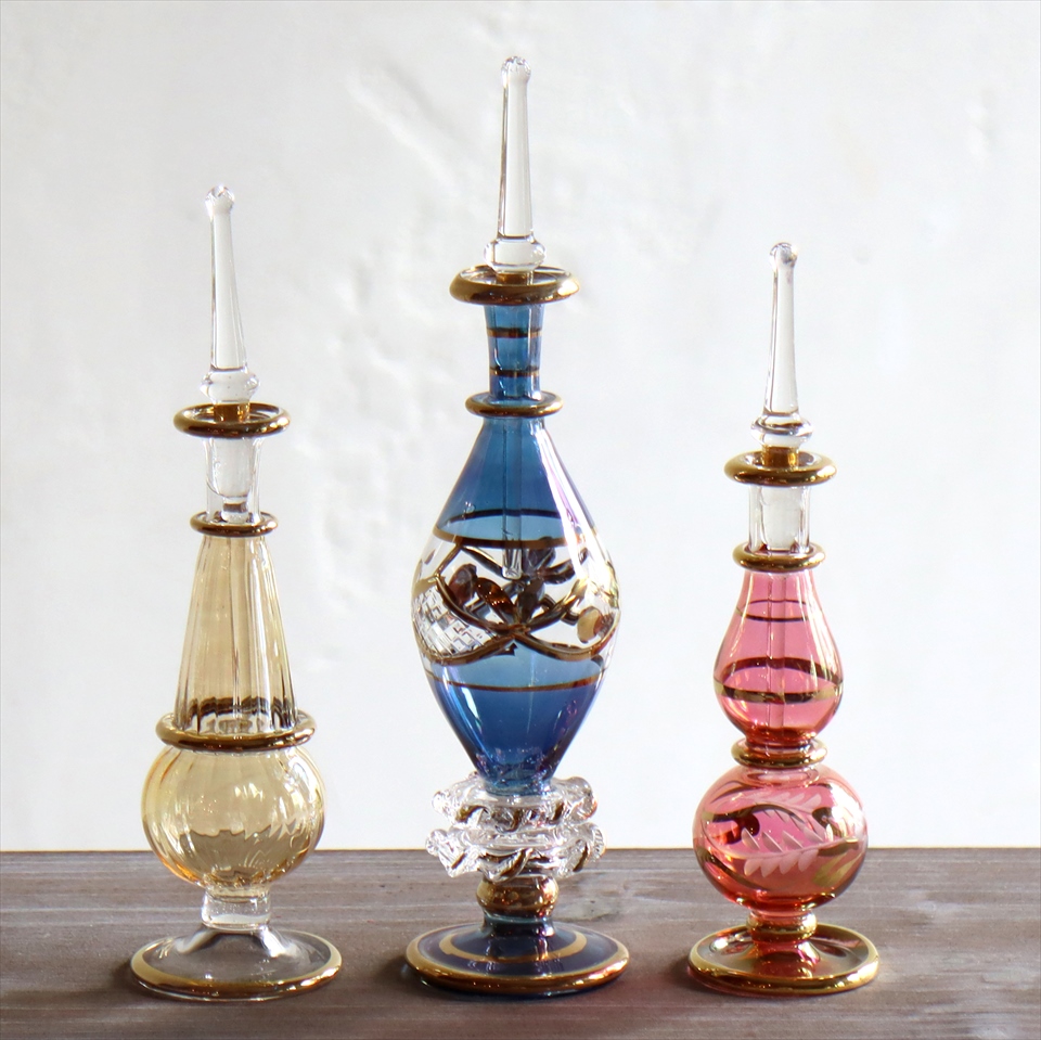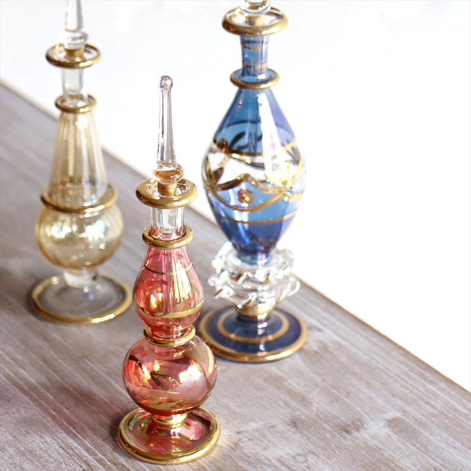 ガラス香水瓶 3本セット エジプト製 Egyptian Purfume Bottle イエロー/ブルー/ピンク