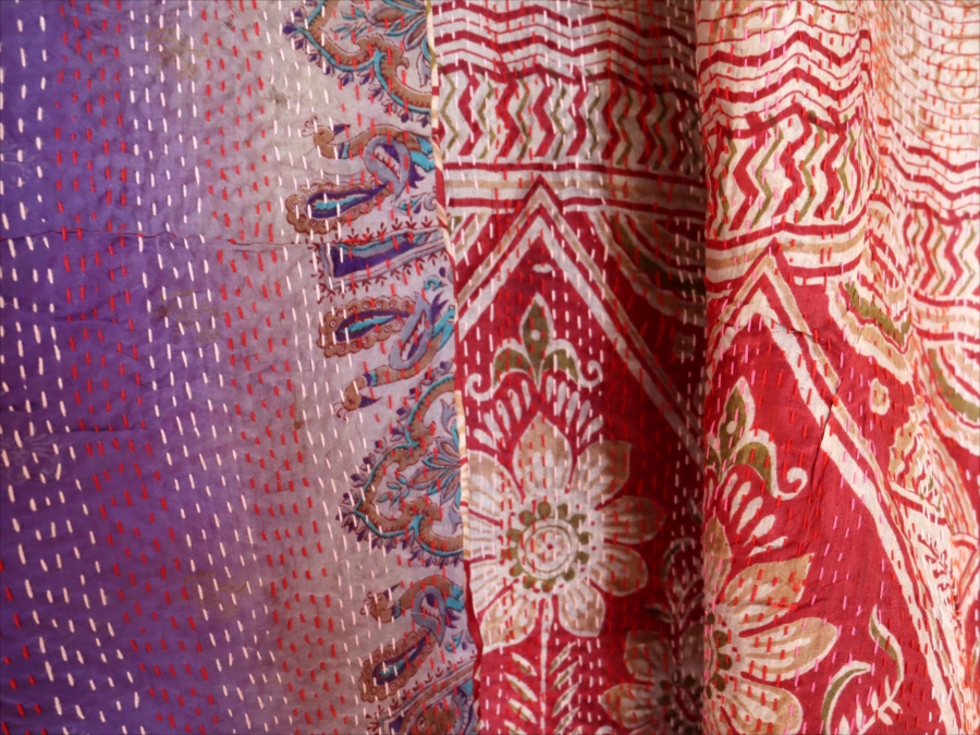 使われているサリーは20世紀後期のベンガル地方のものとされ、刺繍布も同じくベンガル地方で現在つくられています。