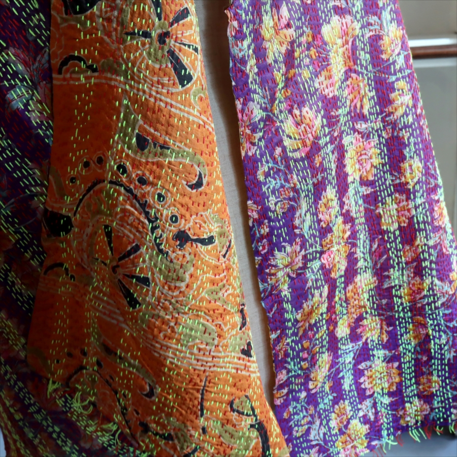 - カンタ刺繍 シルクストール Kantha embroidery, India 178×48cm 【一点もの 現品】