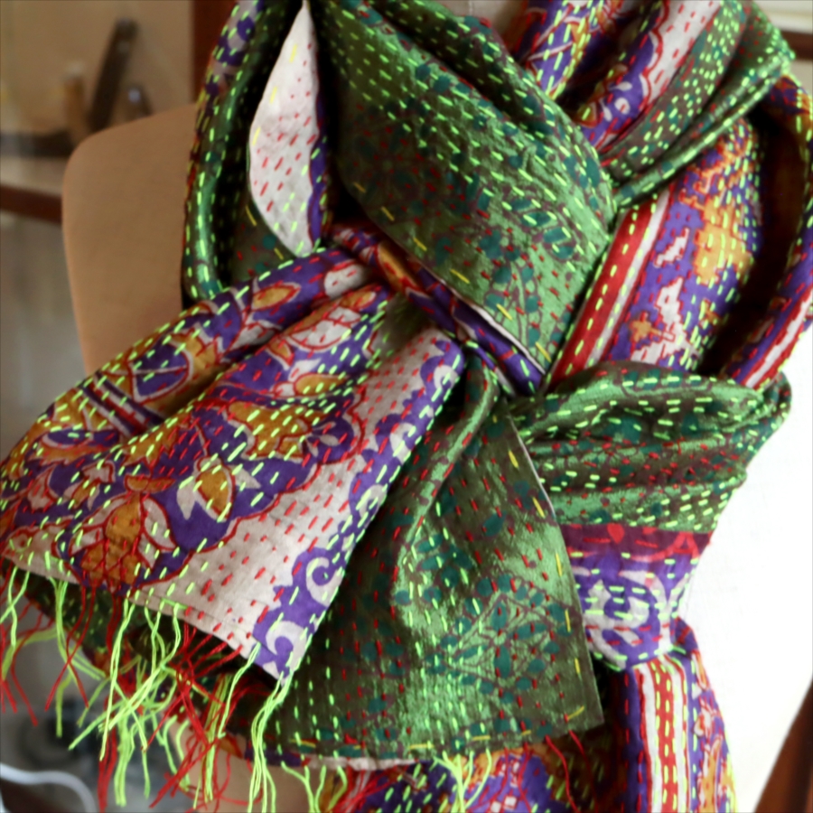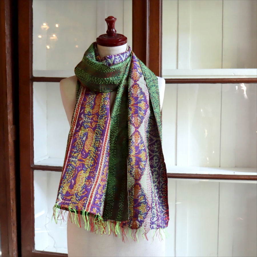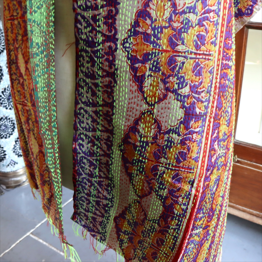 カンタ刺繍 シルクストール Kantha embroidery, India 171×44cm 【一点もの 現品】