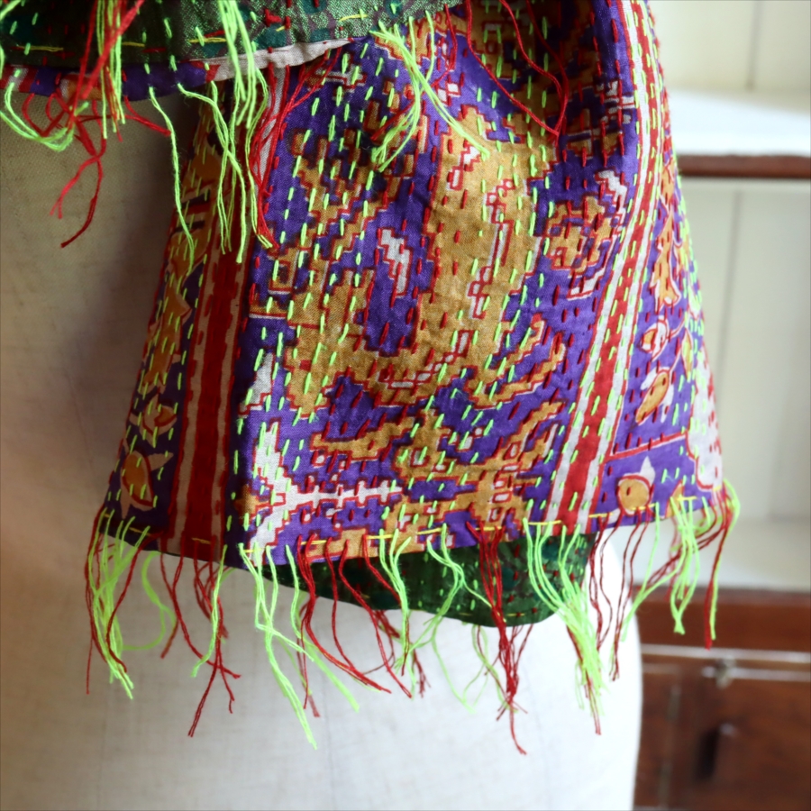 - カンタ刺繍 シルクストール Kantha embroidery, India 171×44cm 【一点もの 現品】