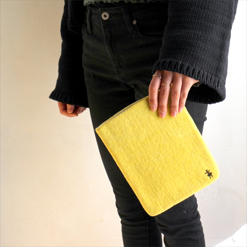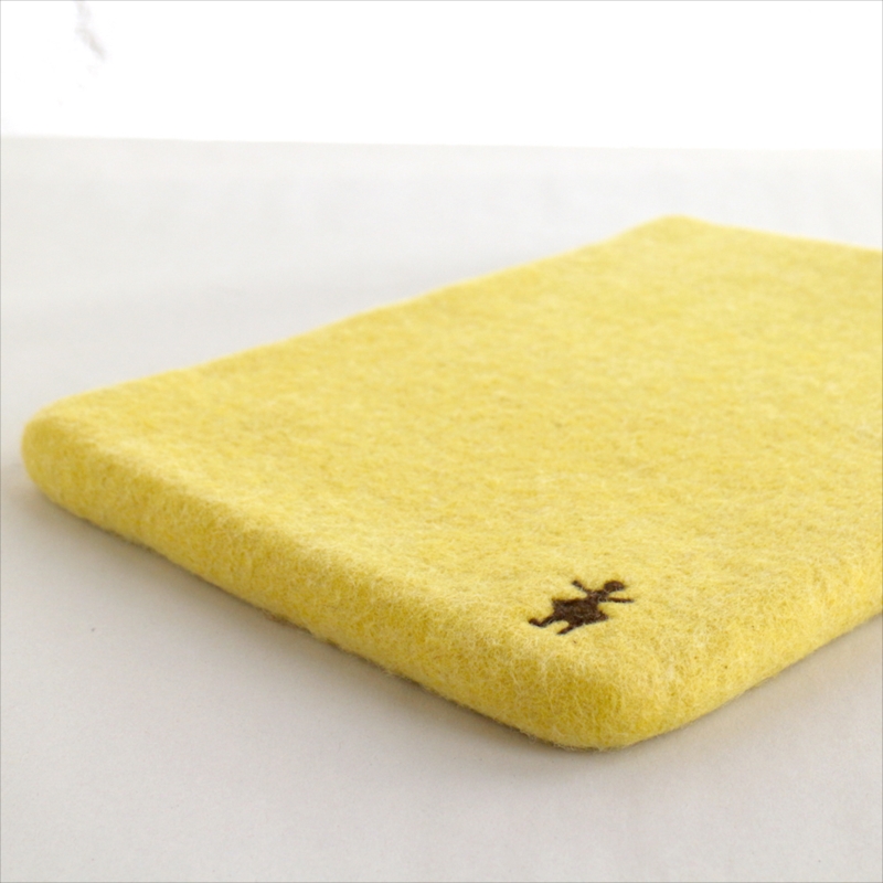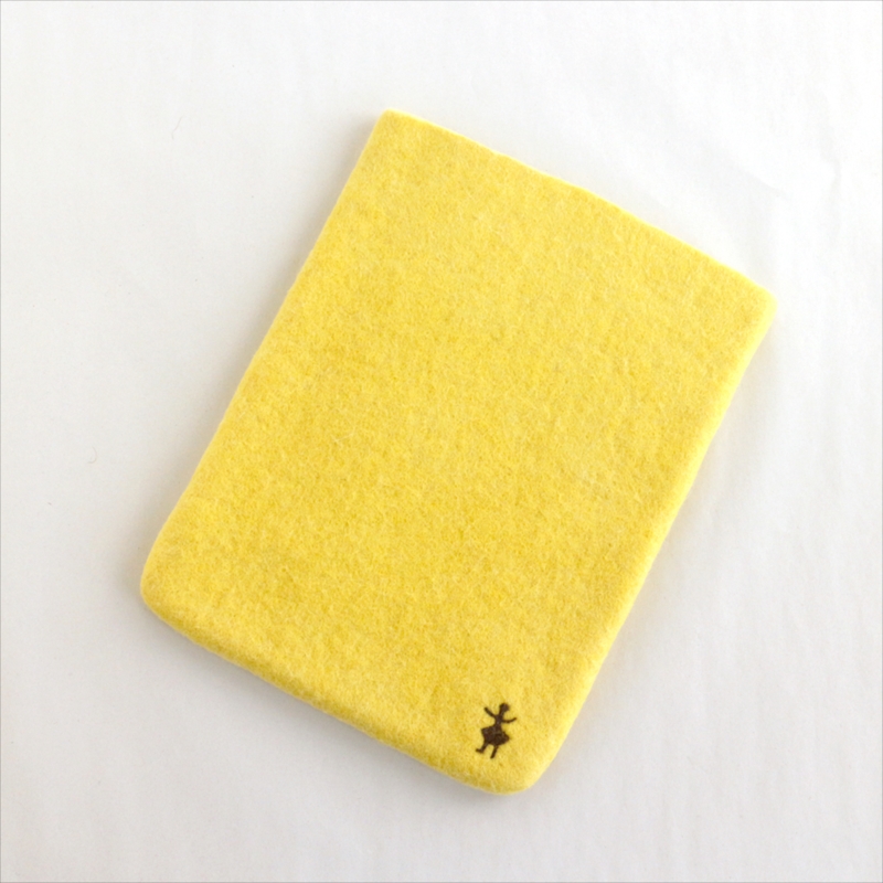 - キルギスのフェルト・タブレットケース・Sサイズ Kyrgyzstan Felt Tablet case Natural dyeing草木染め・アプリコットで染めたイエロー