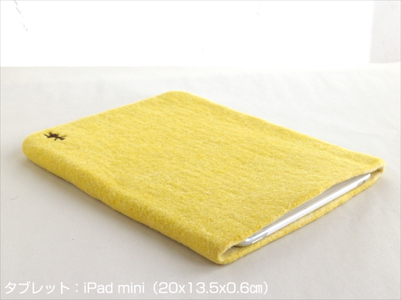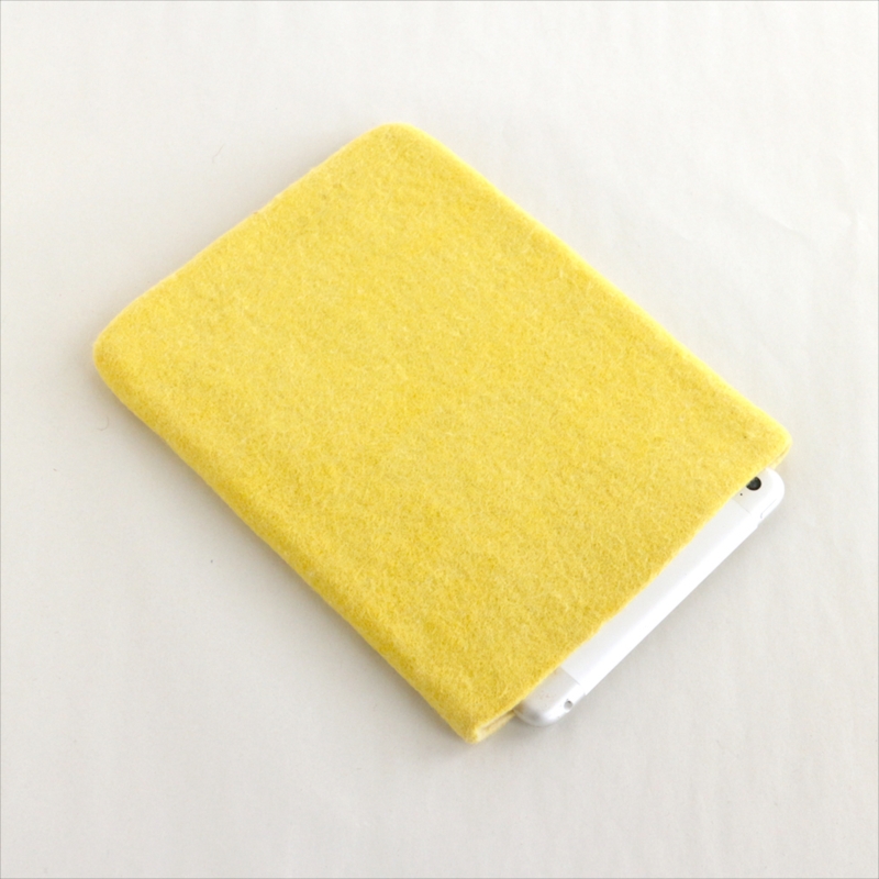 キルギスのフェルト・タブレットケース・Sサイズ Kyrgyzstan Felt Tablet case Natural dyeing草木染め・アプリコットで染めたイエロー