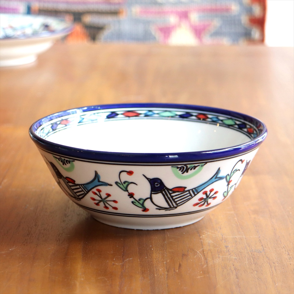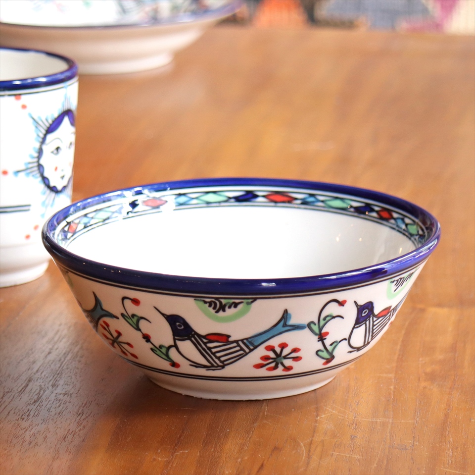 - ボウル サン&バード ヤズド(イラン) 製 直径15cm 陶器 食器 電子レンジ・食洗器対応