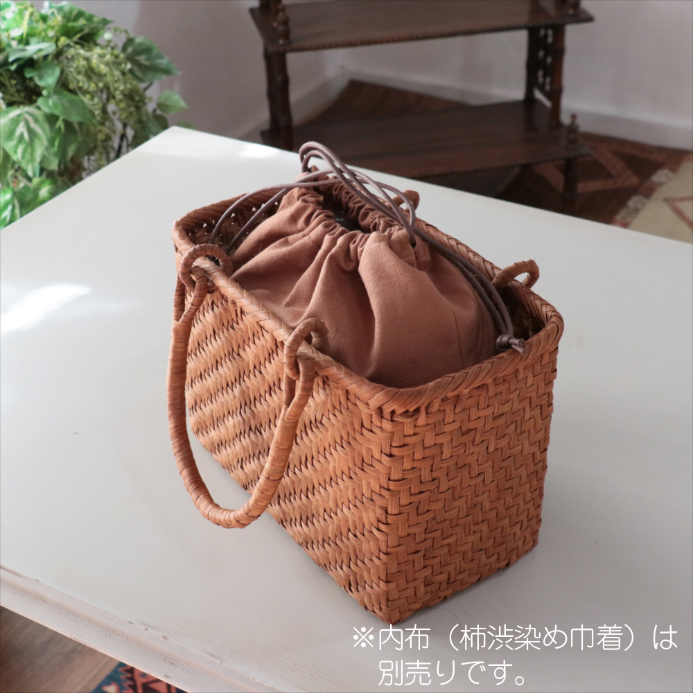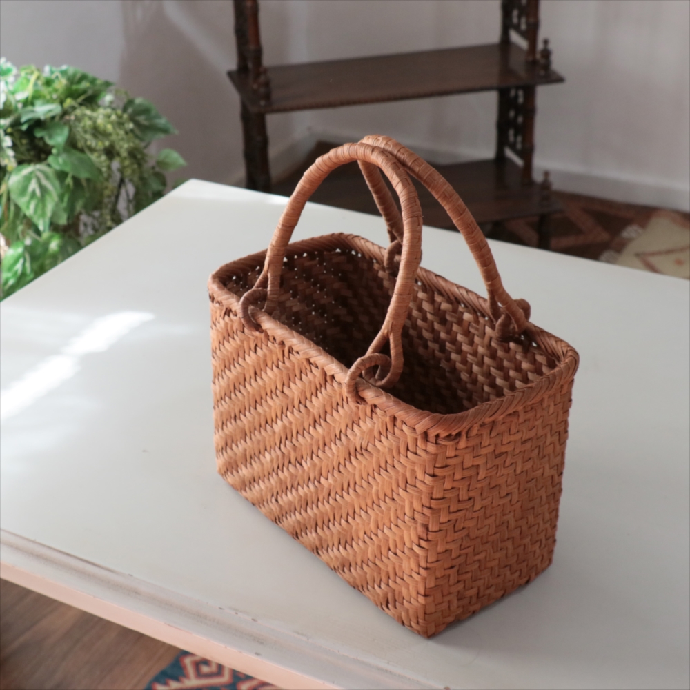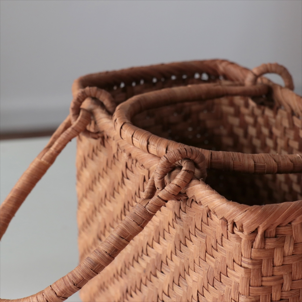 こちらの商品は蔓の表面を削って滑らかに仕上げています。山ぶどうのかごバックは、使い込むほどに艶が出て味わい深い質感に変わってゆきます。その変化もお楽しみください。