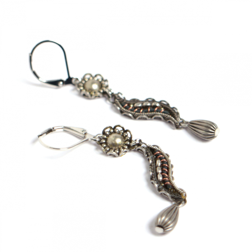 この秋冬のIndigo Collectionは、マットなシルバーに、真鍮色のゴールドとペールトーンのアクセントカラーが加わって、ソフトなイメージになりました。古い時代の宝石箱に眠っていたヴィンテージジュエリーといった雰囲気です。