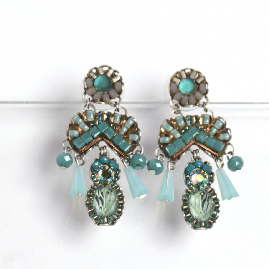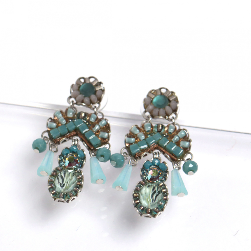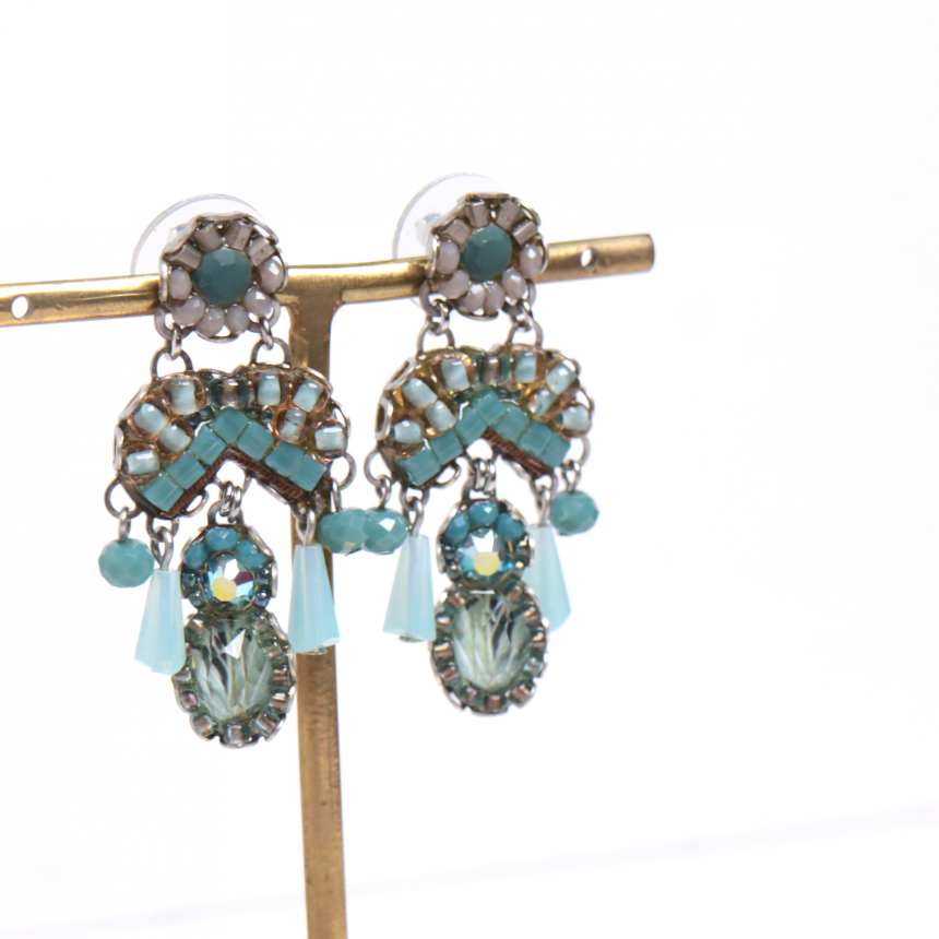 落ちついたペールトーンのブルーとグレーが素敵なウィンターコレクション。パーツが揺れて動きのある、スタッドタイプのピアスです。