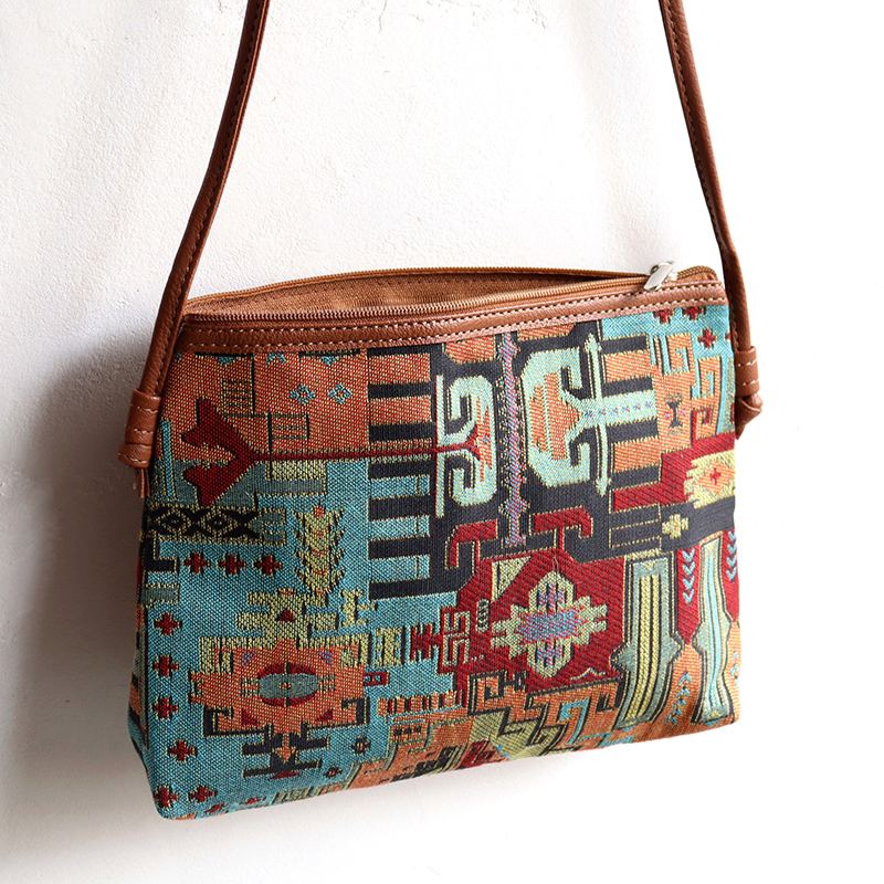 トルコの伝統柄を織り込んだ、エスニックなデザイン&カラーのポシェットです。