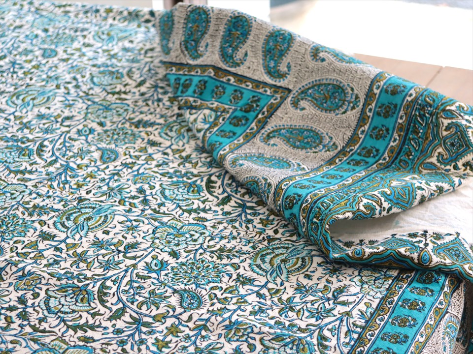 Key:コットン 綿100% 手染布 ブロックプリント 木版 捺染 伝統工芸 インド更紗 ジャワ更紗 ペイズリー フリークロス ベッドスプレッド ベッドカバー ソファカバー カーテン タペストリー ファブリック インテリアファブリック クラフト インテリア ペルシャ ペルセポリス イラン シルクロード アジアン エスニック