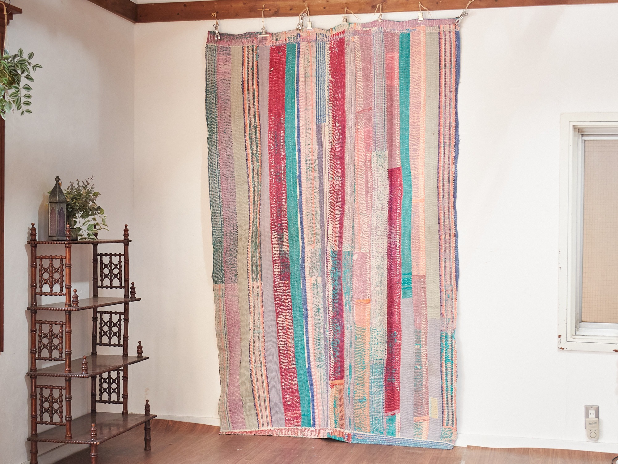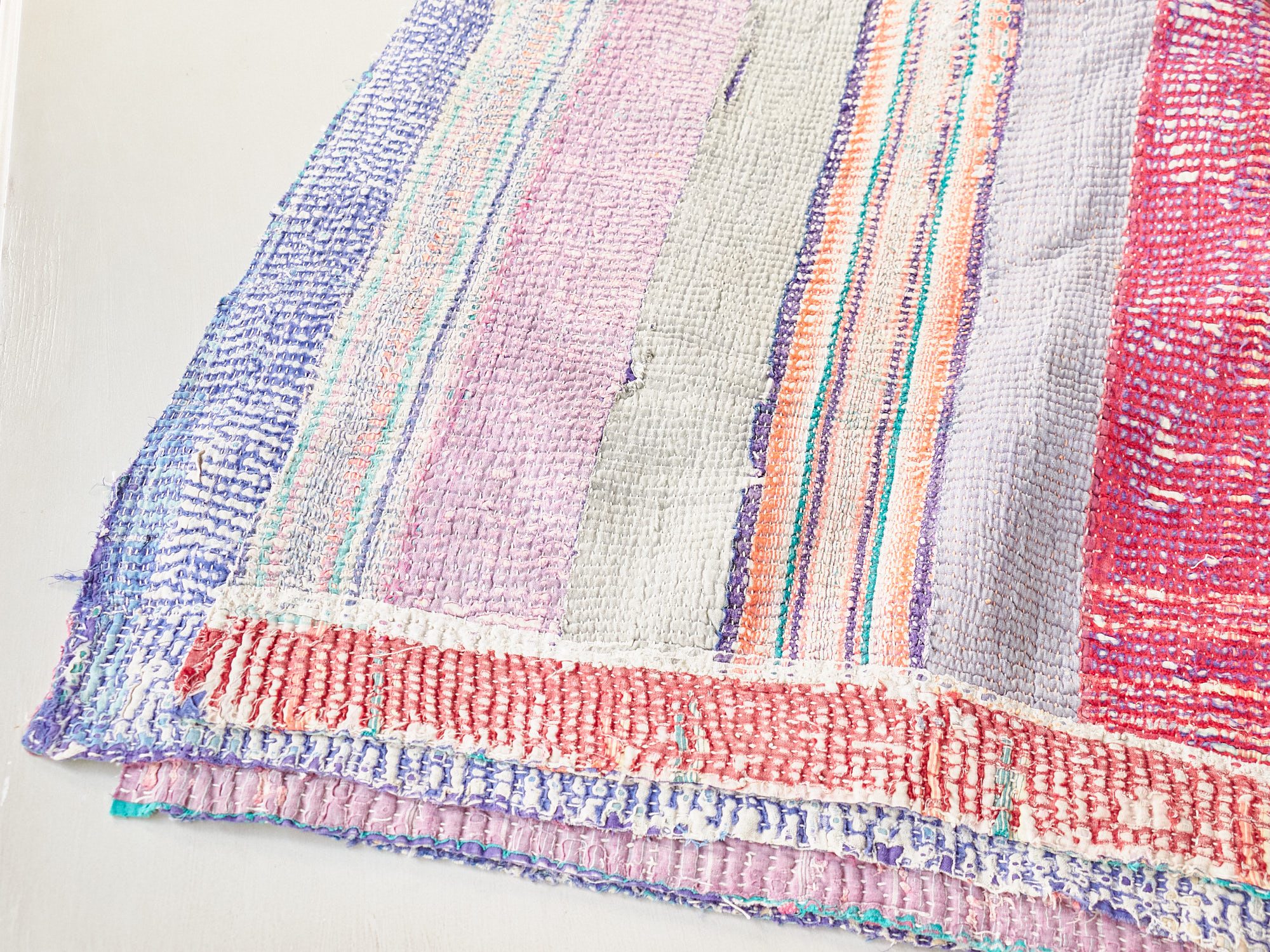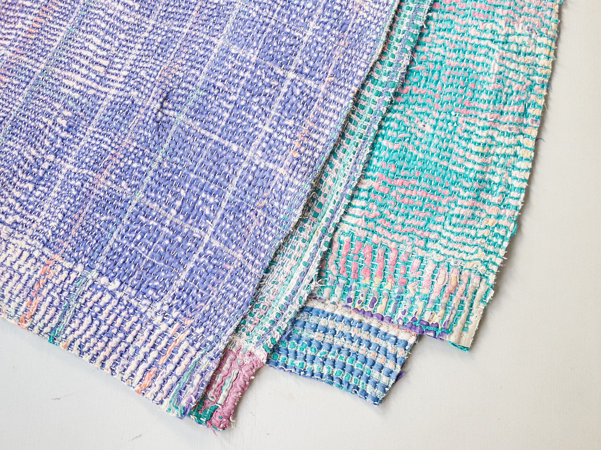 インド カンタ刺繍 パッチワーク ラリーキルト ヴィンテージ220×143cm Kantha embroidery India