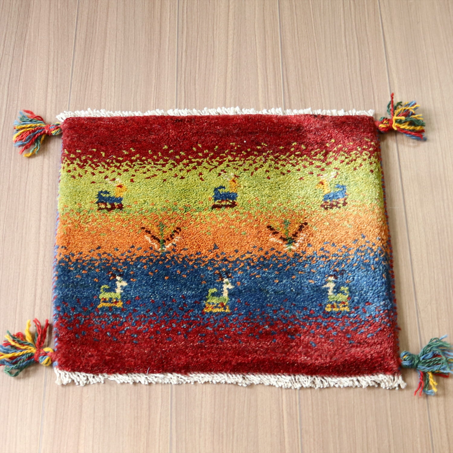 【15%OFF】ギャッベ 座布団サイズ 39x42cm イラン南部 遊牧民の手織りギャッベ