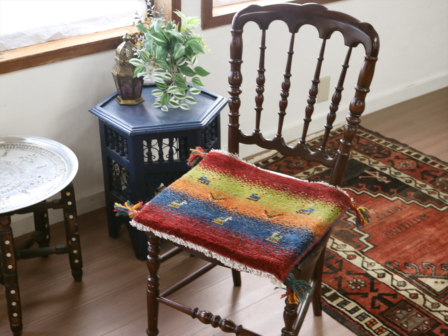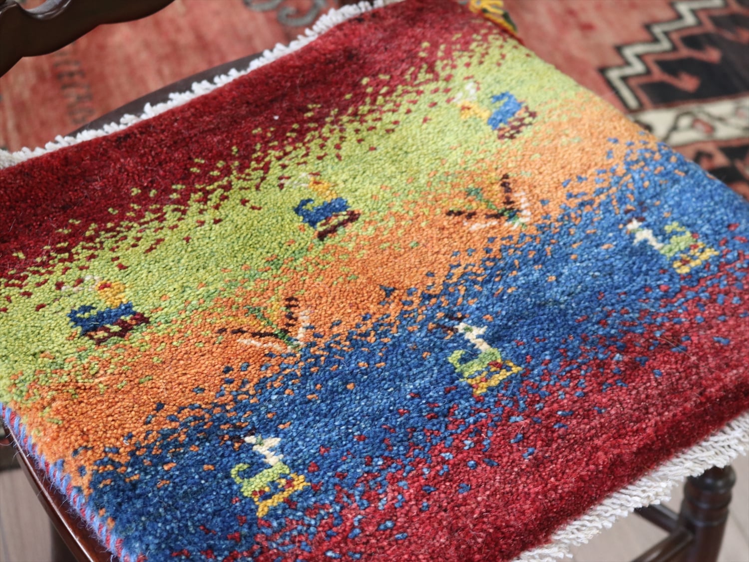 - 【15%OFF】ギャッベ 座布団サイズ 39x42cm イラン南部 遊牧民の手織りギャッベ