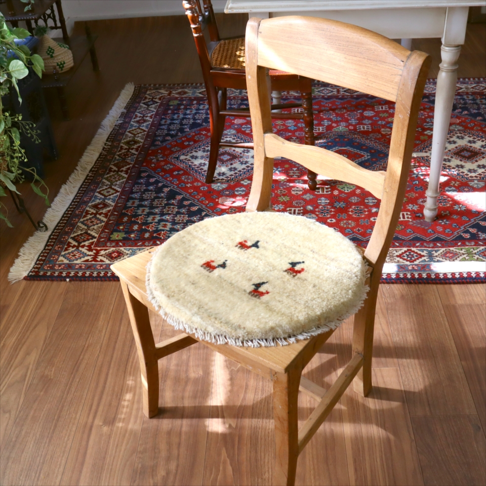 ギャッベ 円形座布団サイズ φ40cm ナチュラルアイボリー ベージュ