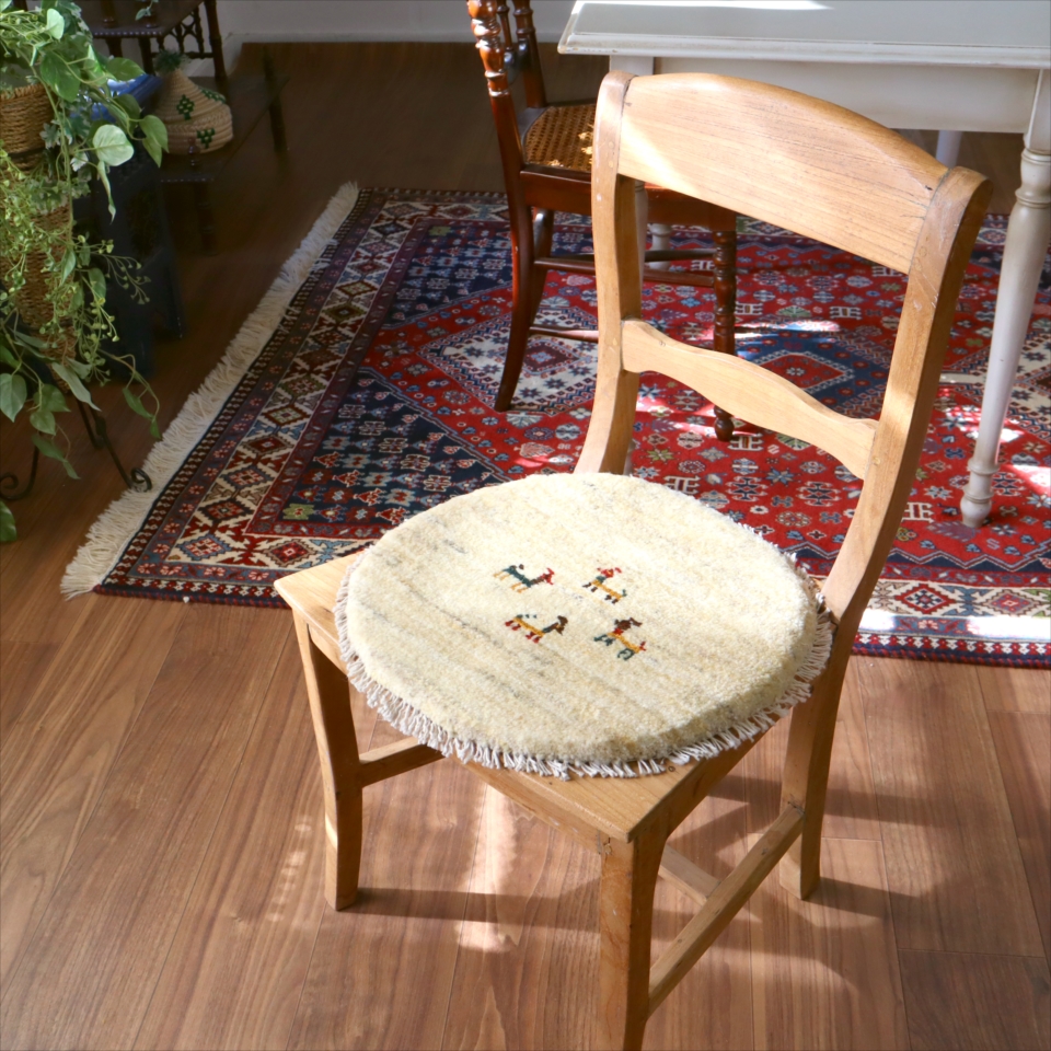 ギャッベ 円形座布団サイズ φ40cm ナチュラルアイボリー ベージュ