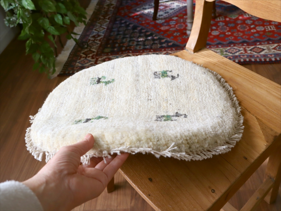 ギャッベ 円形座布団サイズ φ40cm ナチュラルアイボリー ベージュ