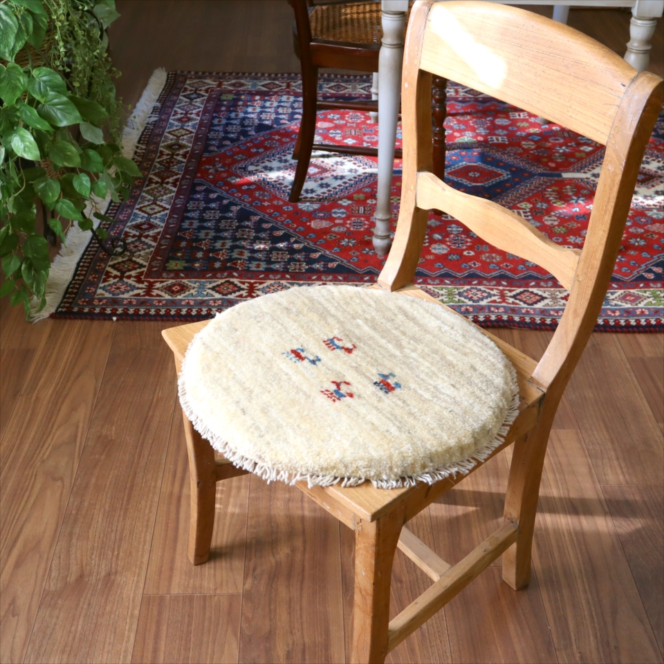 ギャッベ 円形座布団サイズ φ41cm ナチュラルアイボリー ベージュ