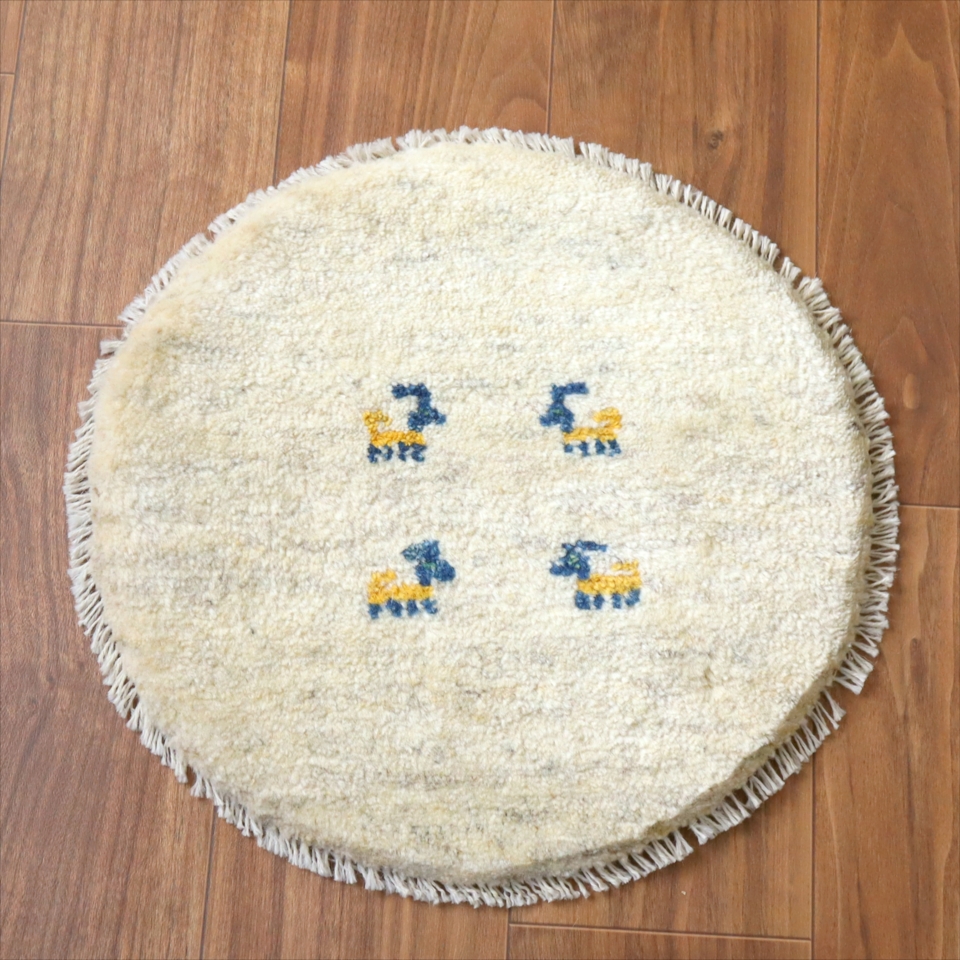 ギャッベ 円形座布団サイズ φ42cm ナチュラルアイボリー ベージュ