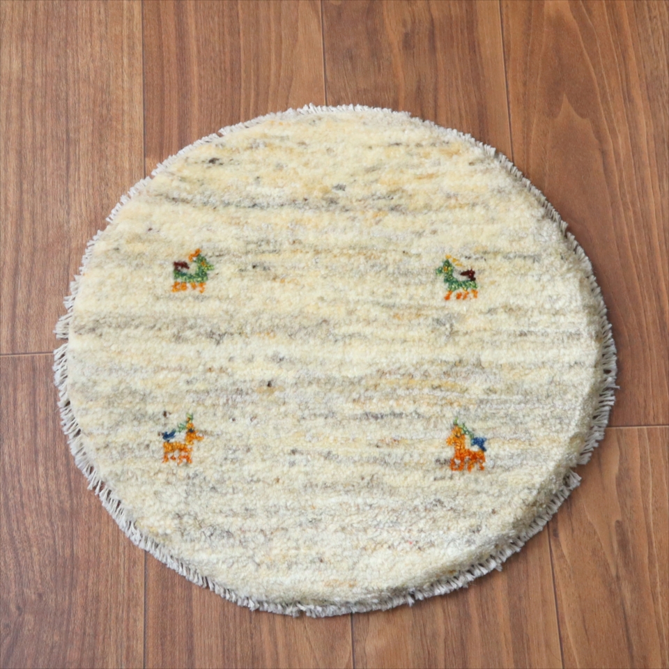 ギャッベ 円形座布団サイズ φ41cm ナチュラルアイボリー ベージュ