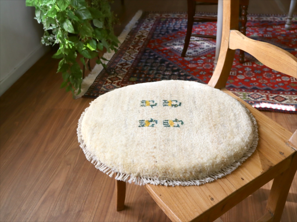 ギャッベ 円形座布団サイズ φ41cm ナチュラルアイボリー ベージュ