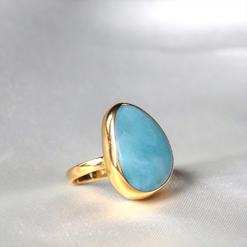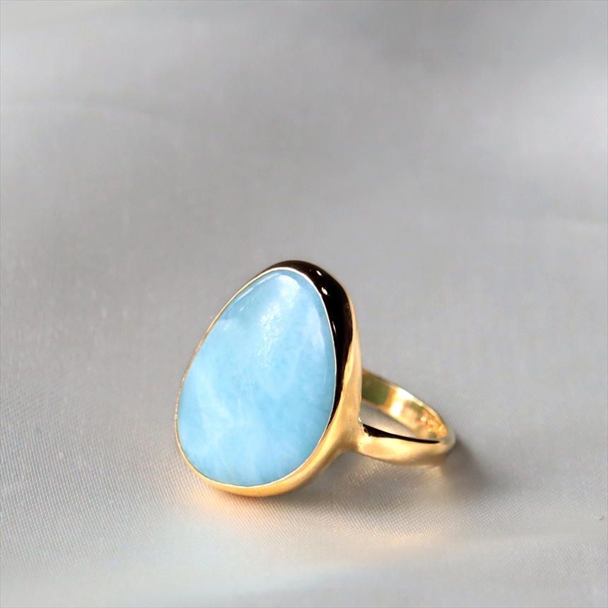 ラリマー ラフカット シルバーリング 18KGF 天然石 トルコジュエリー カラーストーン