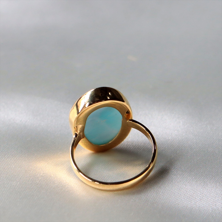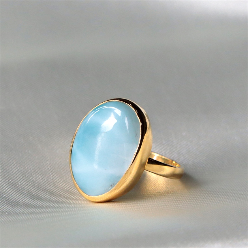 ラリマー シルバーリング オーバル 18KGF 天然石 トルコジュエリー カラーストーン