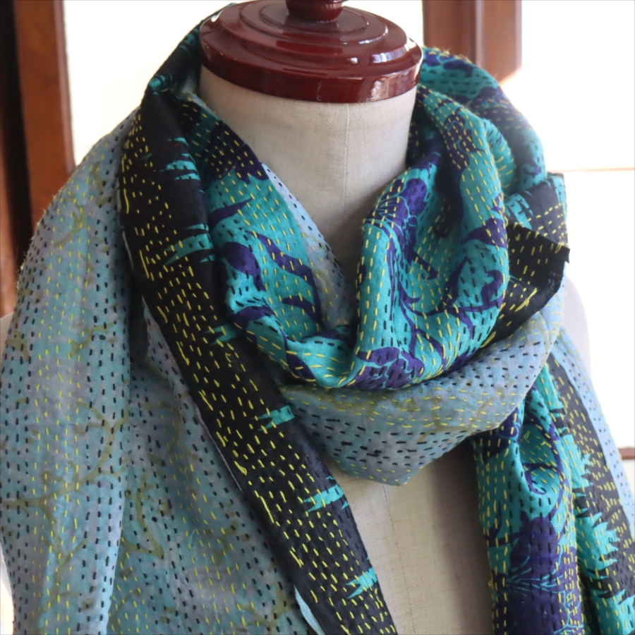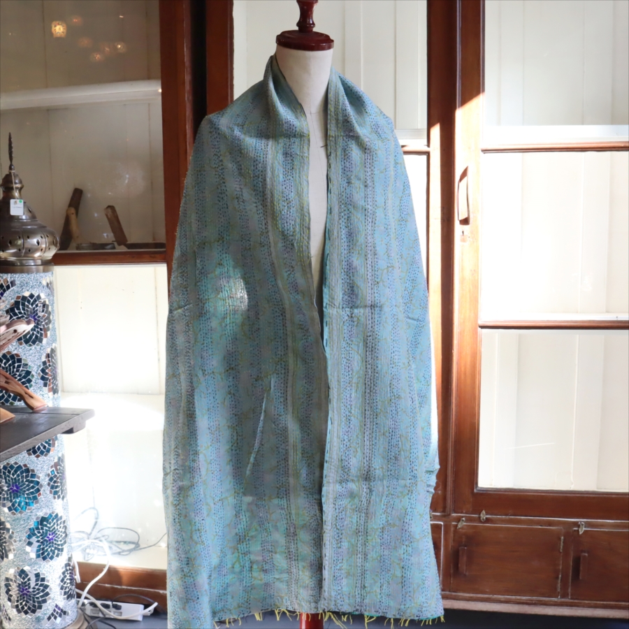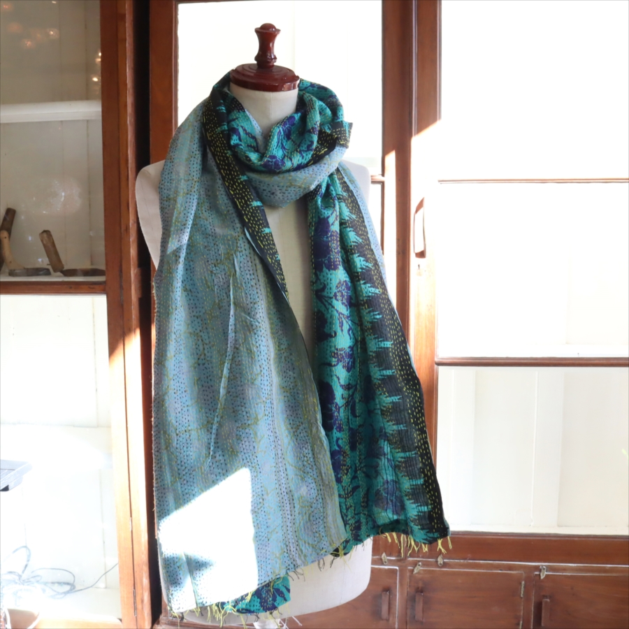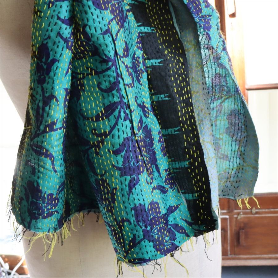 カンタ刺繍 シルクストール Kantha embroidery, India 202×46cm 【一点もの 現品】