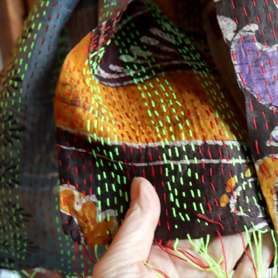 Key:古布、アンティーク布、カンタ、カンタ刺繍、ベンガル、インド、シルク、手仕事、アルチザン、コレクタブル、Kantha Embroidery, Hand craft, antique fabric, India, Bangradish, シルクスカーフ、スカーフ