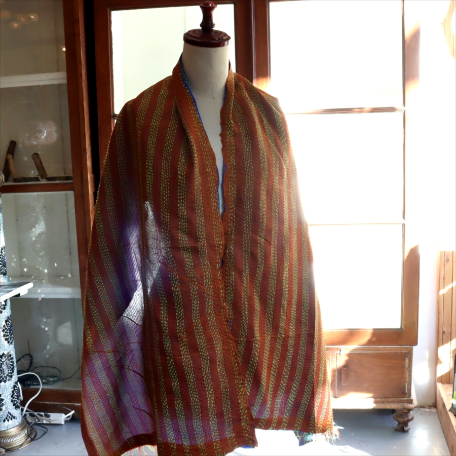 カンタ刺繍 シルクストール Kantha embroidery, India 184×48cm 【一点もの 現品】