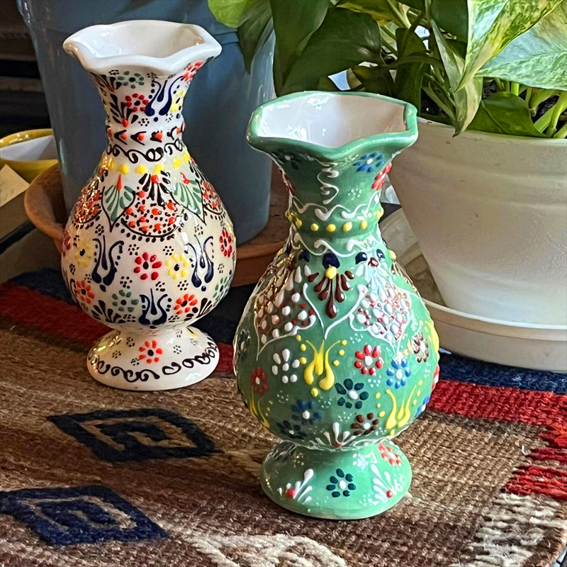 トルコの陶器産業の中心地キュタフヤで作られています。凹凸あるテクスチャでカラフルなフラワーデザインが手書きで描かれています。