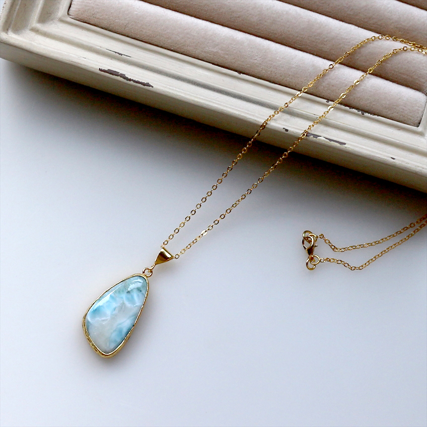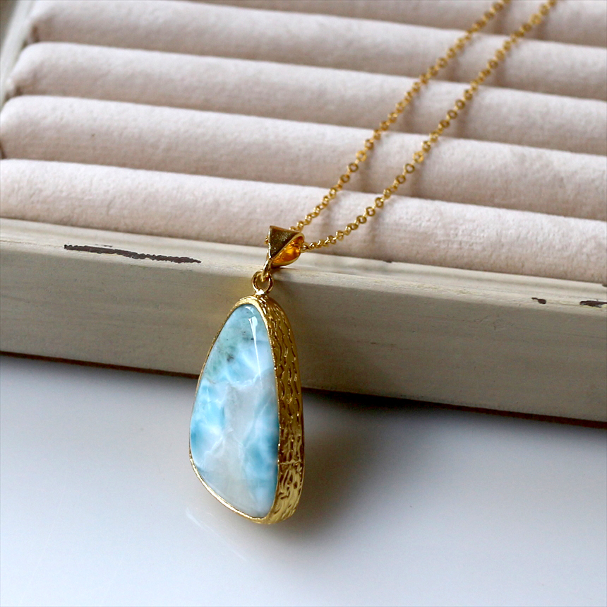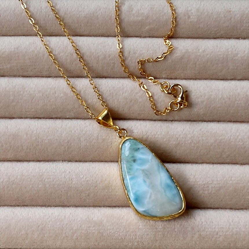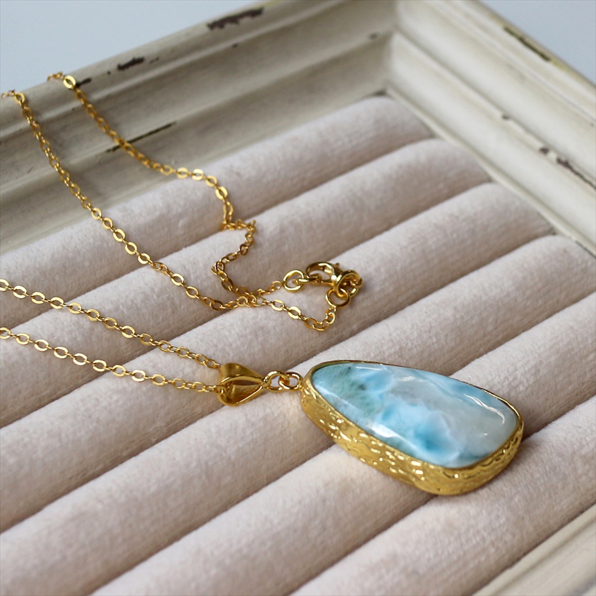 ラリマー ペンダント 22KGP カボション ラフカット アルサメイア 天然石一粒ネックレス トルコジュエリー